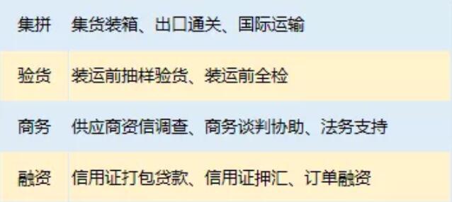 為在中國(guó)具有多個(gè)供應(yīng)商的外商提供集拼、商務(wù)、驗(yàn)貨、融資等一站式供應(yīng)鏈服務(wù)。