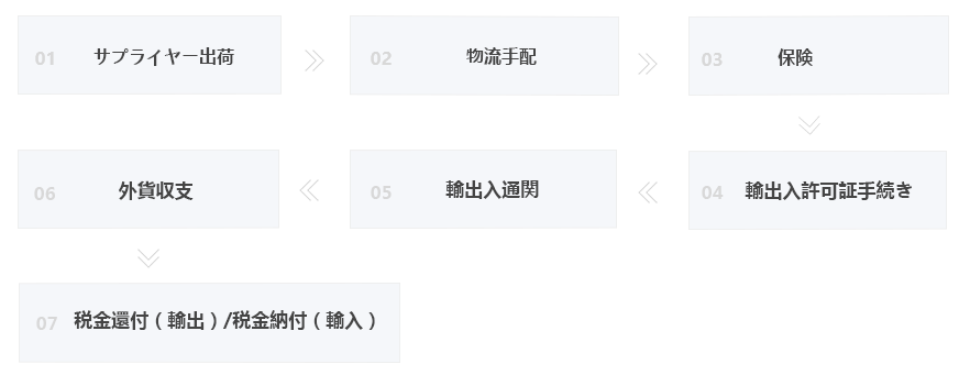 輸出入代理:輸出稅金還付サービス、通関書類、通関許可証手続き代行
