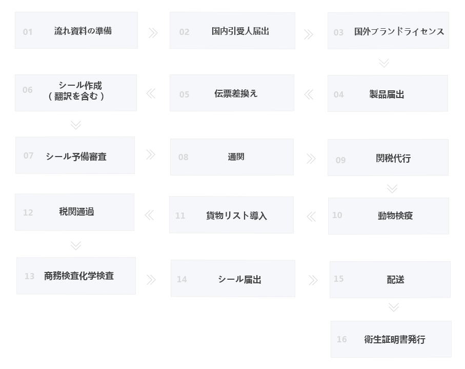 関連サービスが勢揃い:ADPは輸入企業屆出、外國側ブランドライセンス、製品システム屆出、シールデザイン、輸入代理、L/C開設、通関、商務検査の段取り、倉庫、仕分け、シール貼付、配送、衛生証明書申請など一連のフルセットのサービスを提供できます。