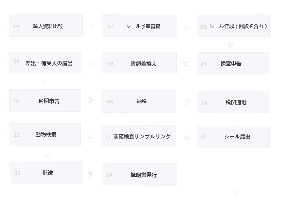関連サービスが勢揃い:亜東盛が提供できる関連サービスは:シール翻訳、シールデザイン、輸入代理、L/C開設、通関、商品検査段取り、倉庫、仕分け、シール貼付、配送、衛生証明書発行などがあります。