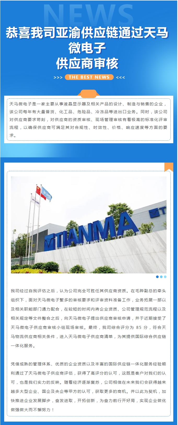 恭喜我司亞渝供應鏈通過天馬微電子供應商審核